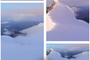 凌晨起床简单补给后出发冲顶,出发约2个多小时后,我们需要翻越60米的大冰壁到平台后又一个冰壁,后登顶6410M的峰顶山。登顶不易停留太久,开始下撤返回C3,收拾后直接下撤至大本营,上山容易下山难,一定要保留一半体能下山